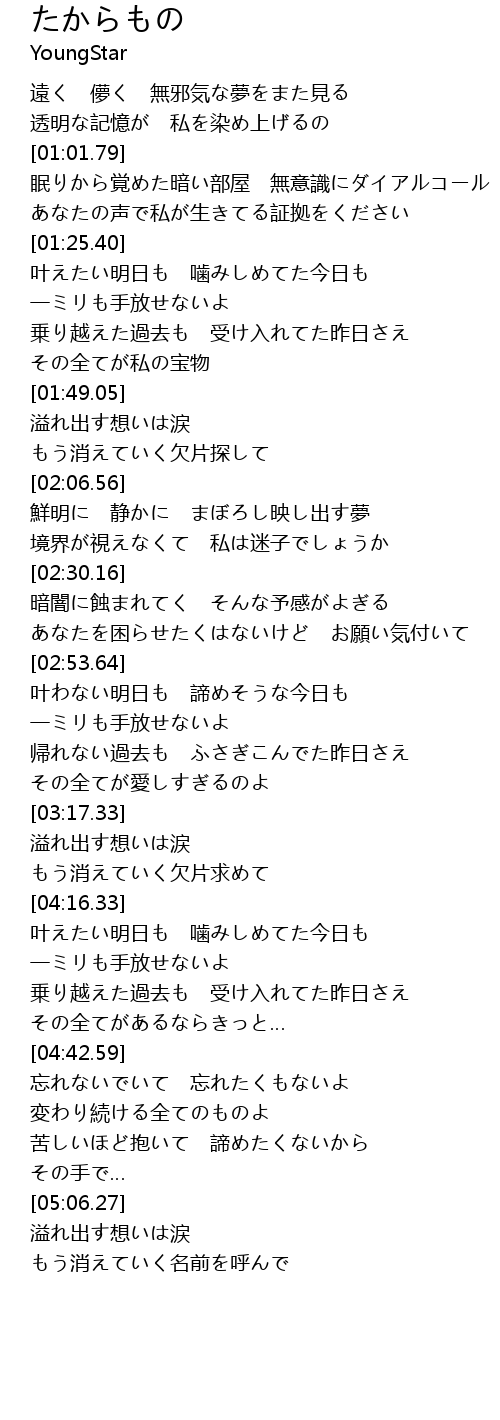 | [04:27.95] | 乗り越えた過去も 受け入れてた昨日さえ |