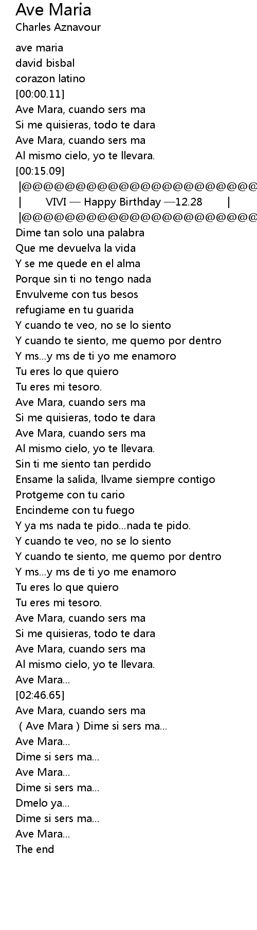 | [02:23.66] | Ave Mara, cuando sers ma |