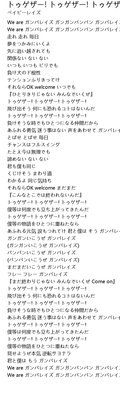 | あふれる元気 涙もつれてけ 君と僕は そう ガンバレイズ | |