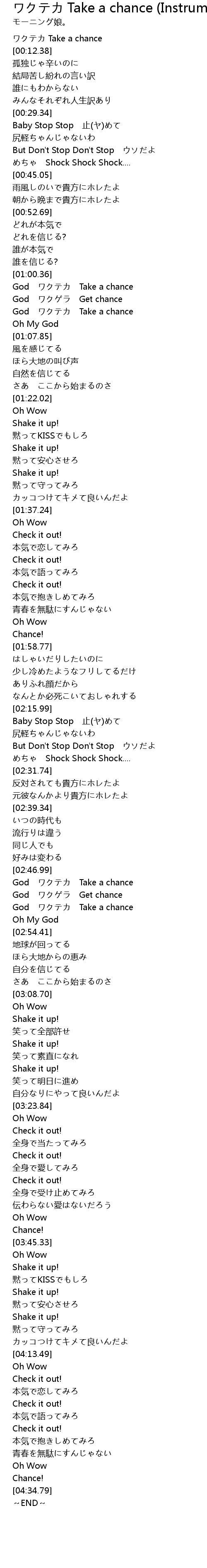 | [02:47.99] | God ワクテカ Take a chance |