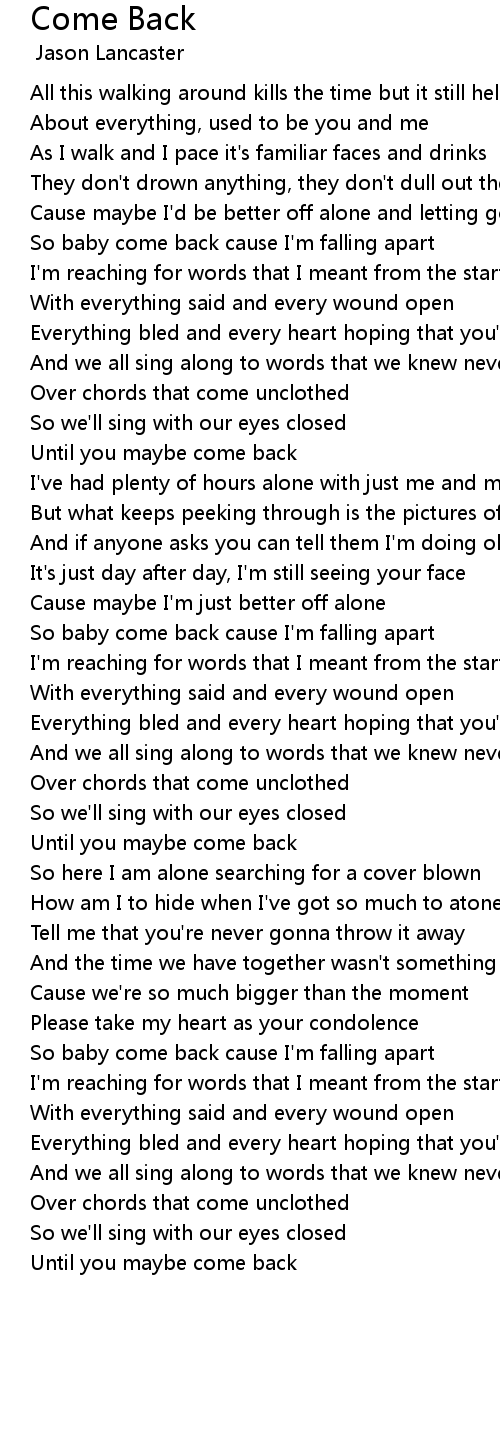 So baby come back cause I'm falling apart