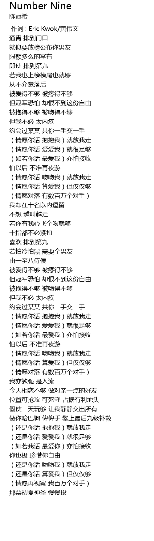 | [00:00.00] | 作词 : Eric Kwok/黄伟文 |