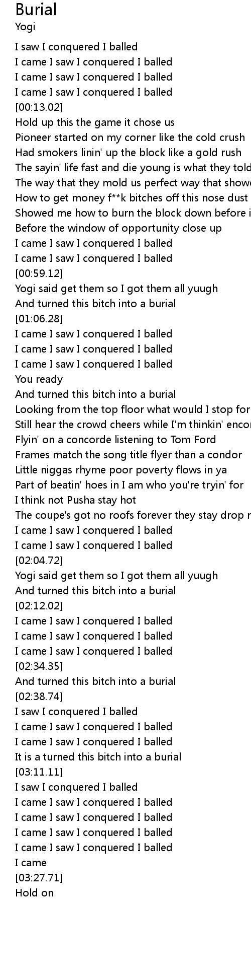 | [01:45.58] | Little niggas rhyme poor poverty flows in ya |