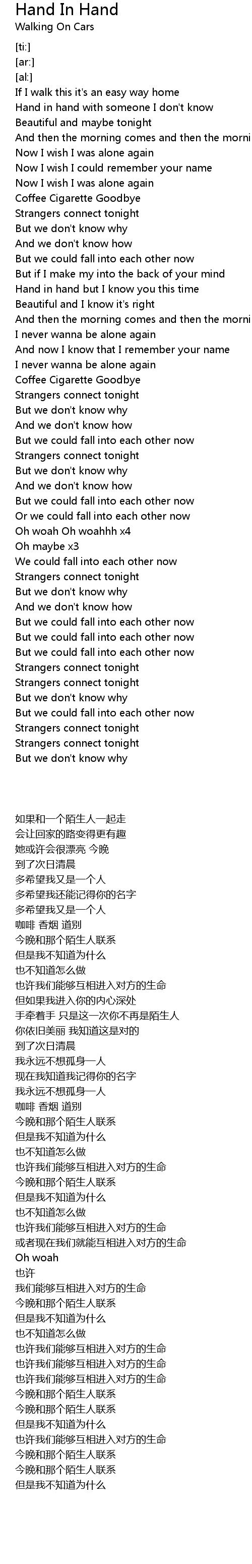 Hand in hand with someone I don't know |