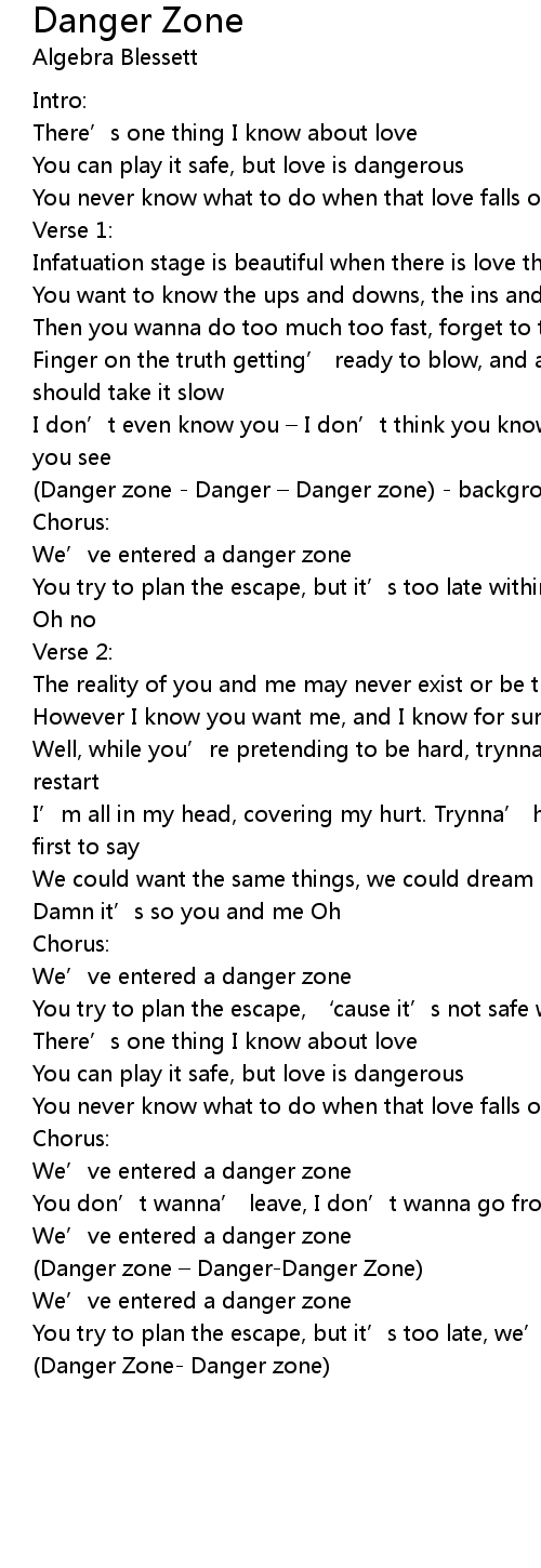 | You try to plan the escape, ' cause it' s not safe we' re in a danger zone | |