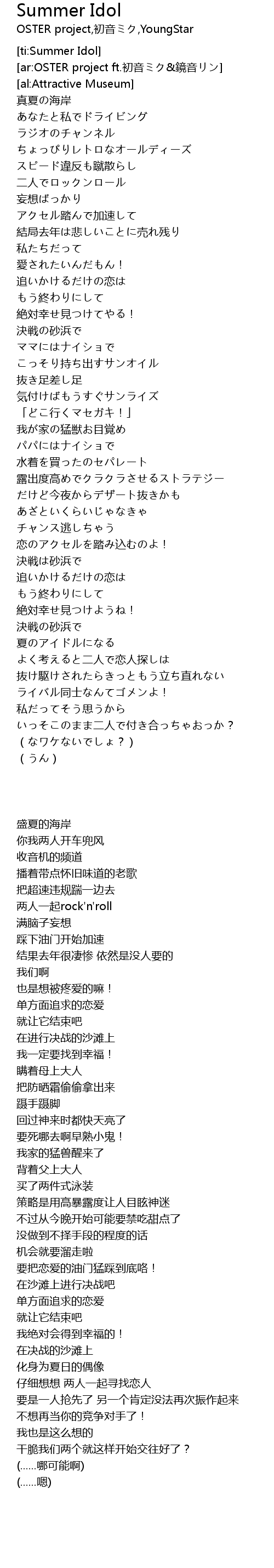 | [ar:OSTER project ft.初音ミク&鏡音リン] | |
