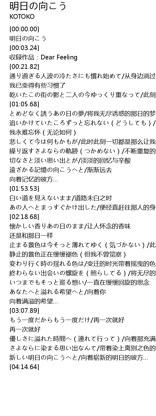 | [03:50.66] | 優しさに溢れた時間へ(連れて行って)/向着那充满温柔的时光(带我回去) |