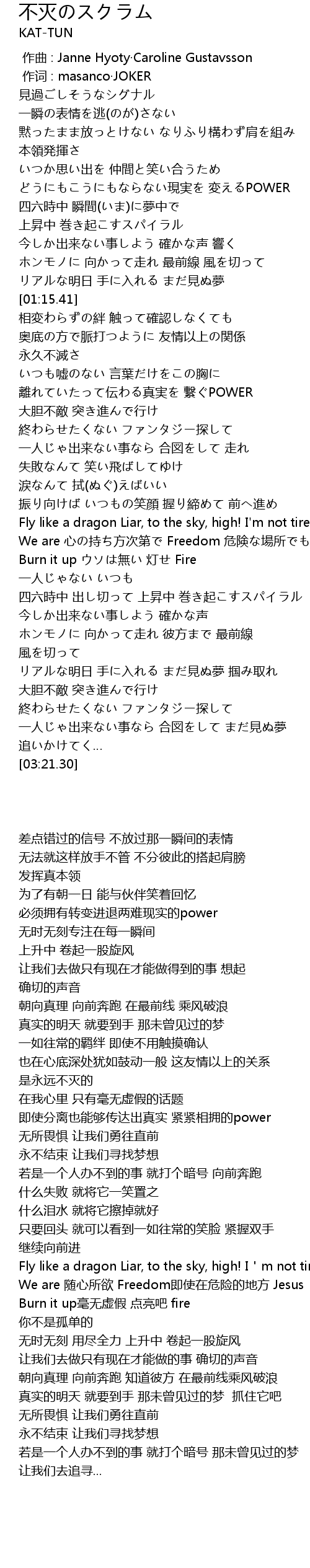 | [02:24.77] | Burn it up wu deng Fire |