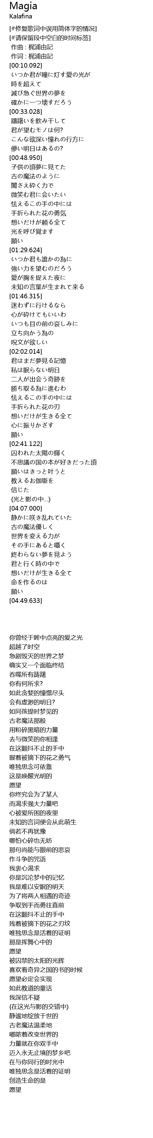 | [00:54.335] | 古老魔法那般 |