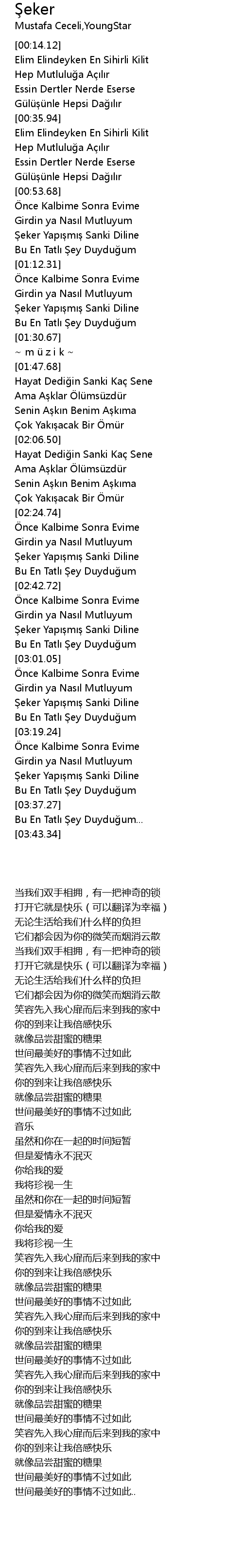 | [01:03.38] | Şeker Yapışmış Sanki Diline |