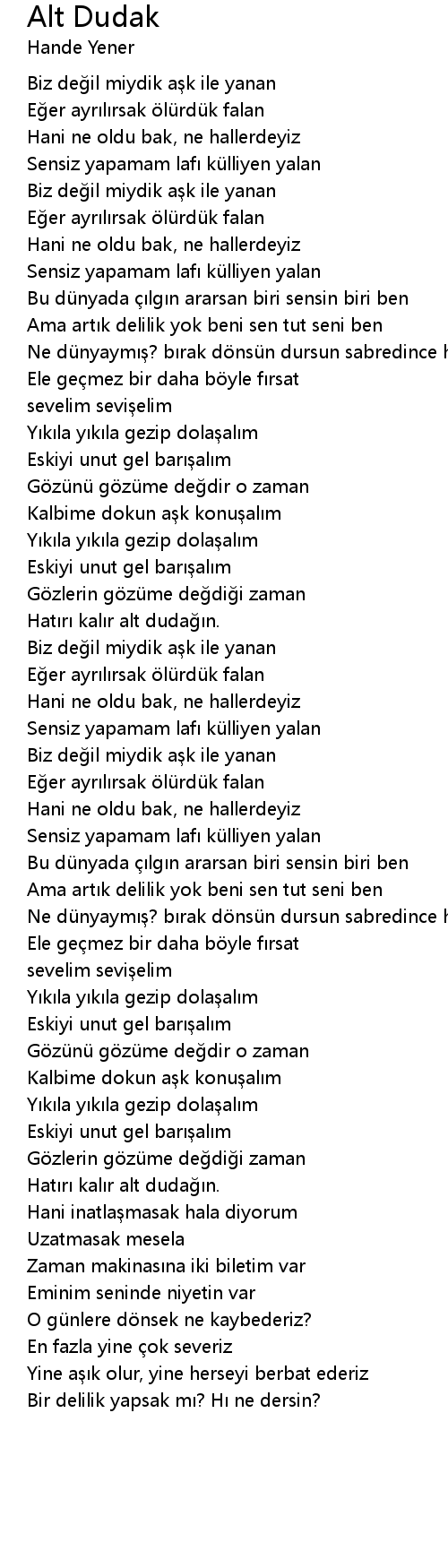 | Bu dü nyada lg n ararsan biri sensin biri ben | |
