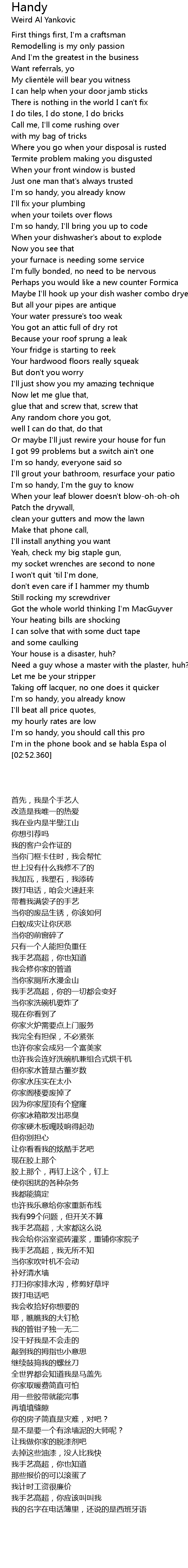 | [00:47.500] | I'm so handy, I'll bring you up to code |