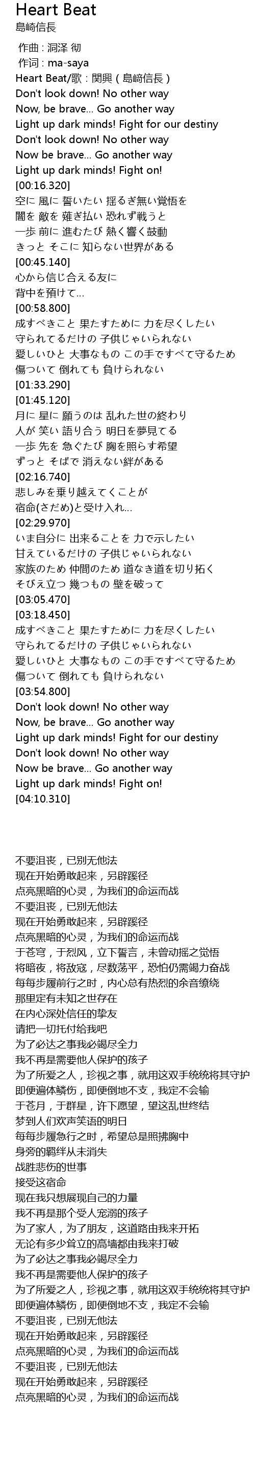 | [00:00.300] | Heart Beat/歌:関興(島﨑信長) |