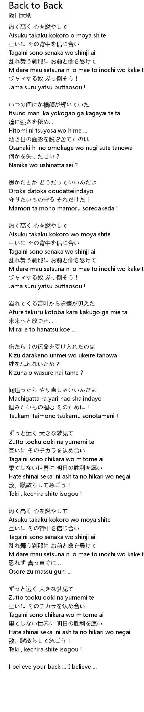 | 歌曲 | Back to Back |