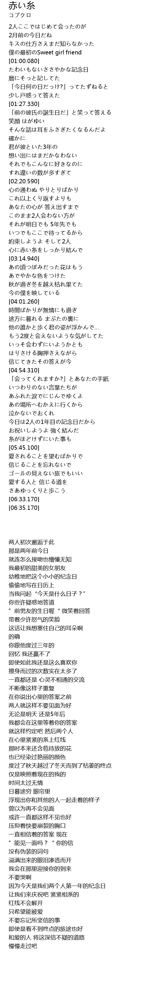 | [03:06.010] | 心に赤い糸をしっかり結んで |