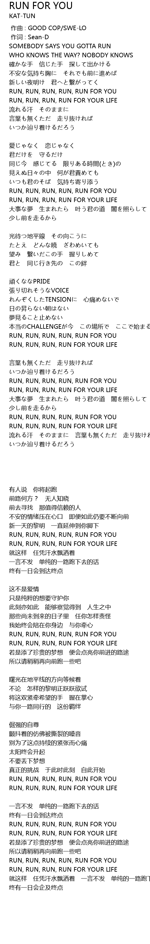 | [00:32.77] | RUN, RUN, RUN, RUN, RUN FOR YOU |