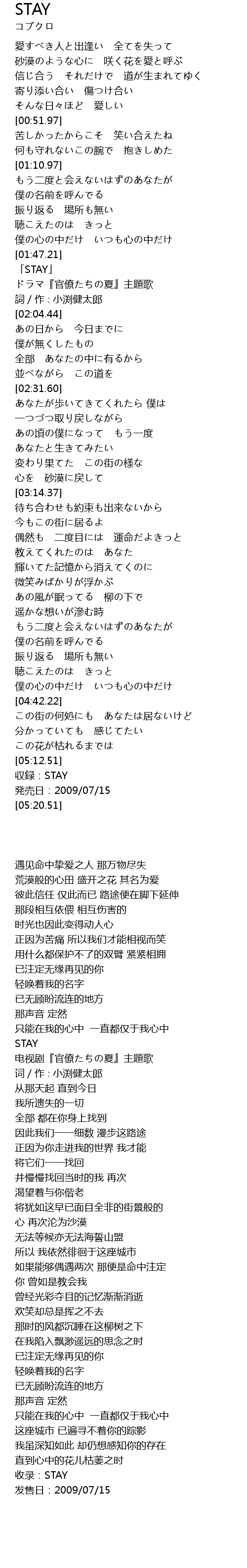 | [01:50.44] | 「STAY」 |