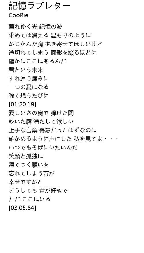| 歌曲 | 記憶ラブレター |