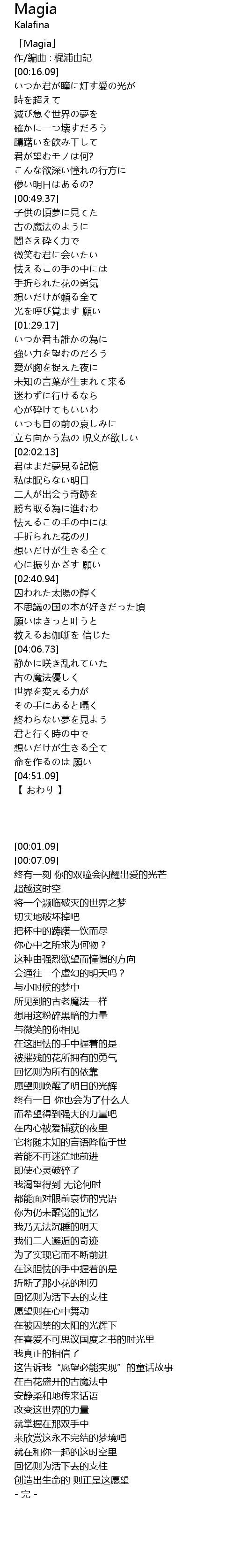 | [00:01.09] | 「Magia」 |