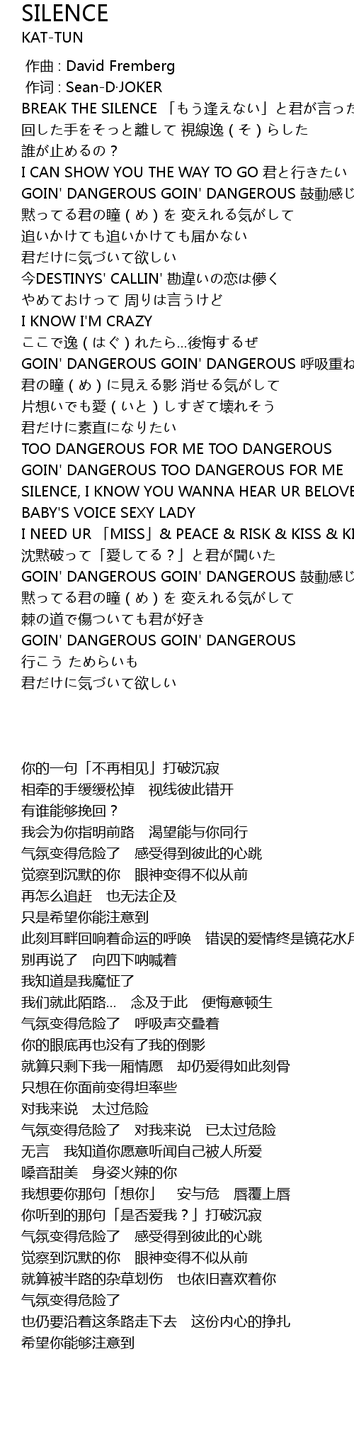 | [00:20.23] | BREAK THE SILENCE feng jun yan |