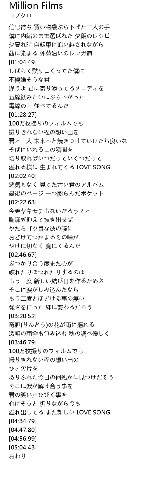 | [04:23.34] | 溢れ出してる また新しい LOVE SONG |