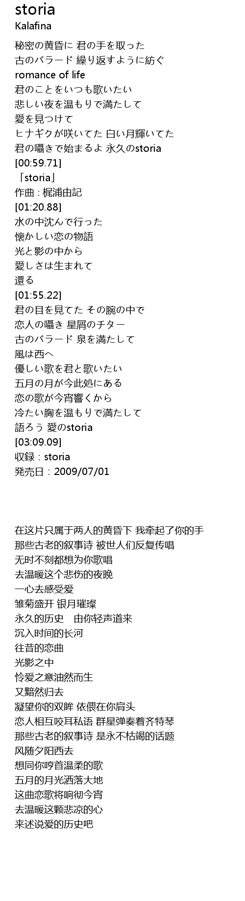 | [00:46.27] | 君の囁きで始まるよ 永久のstoria |