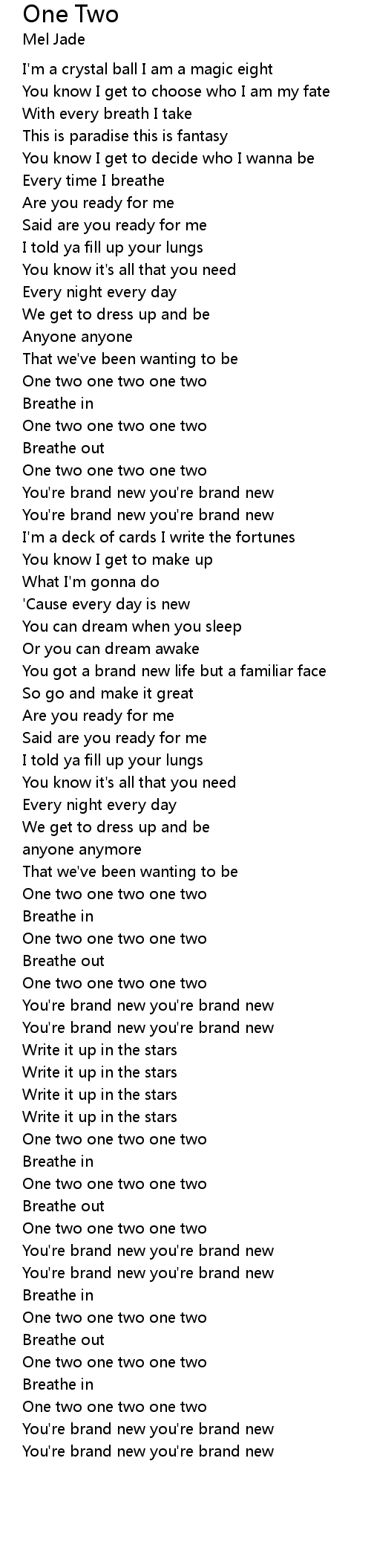 | [02:00.05] | One two one two one two |