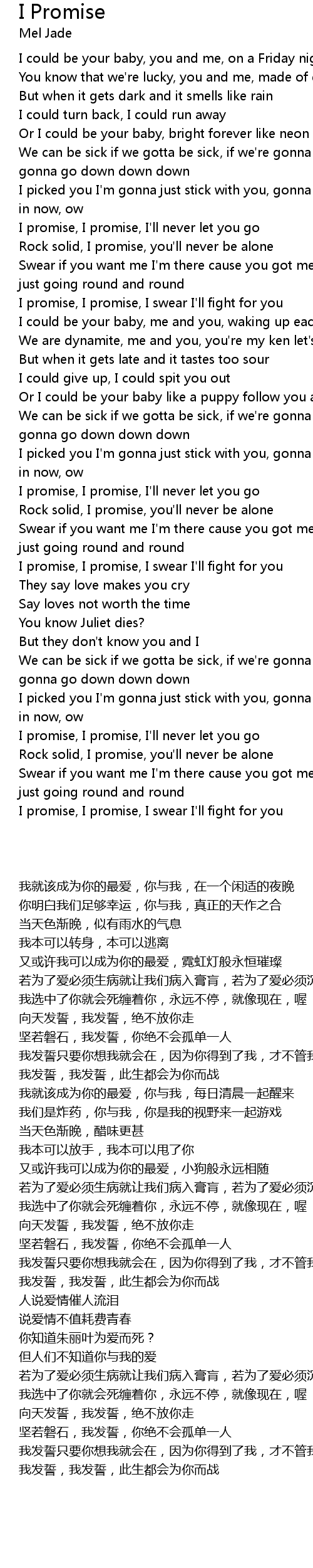 I promise, I promise, I'll never let you go |