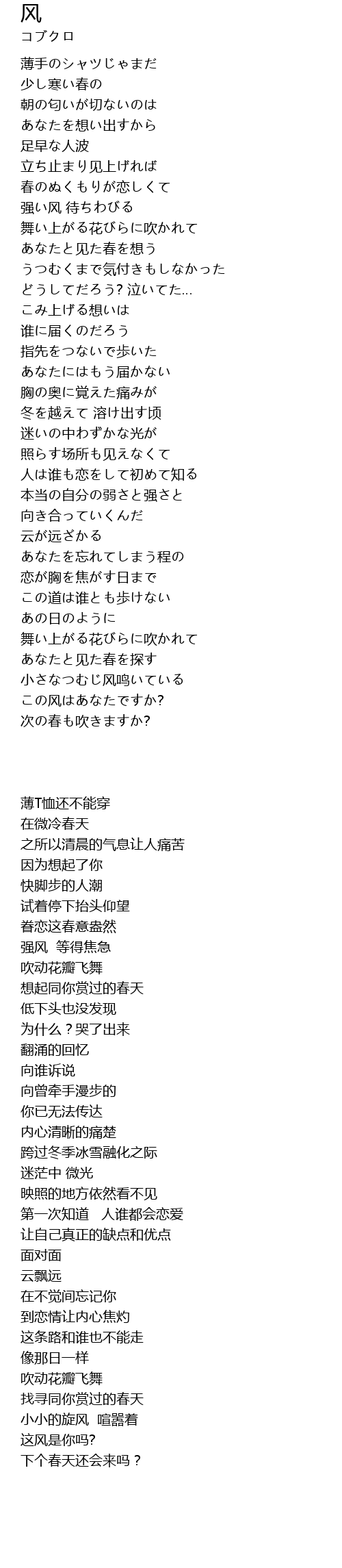 | 歌曲 | 风 |