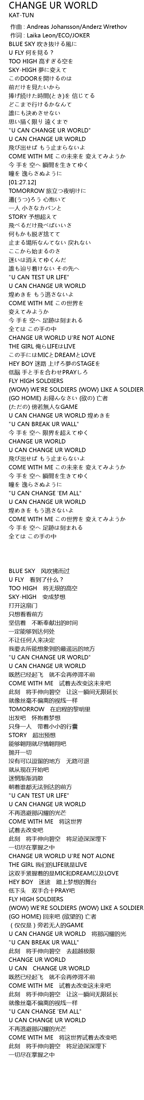 | [03:31.50] | CHANGE UR WORLD |