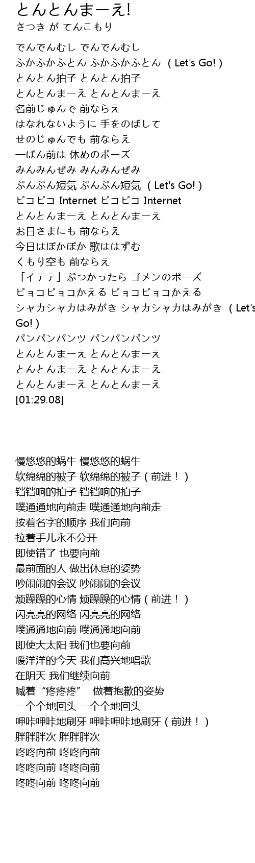 | [01:25.58] | とんとんまーえ とんとんまーえ |