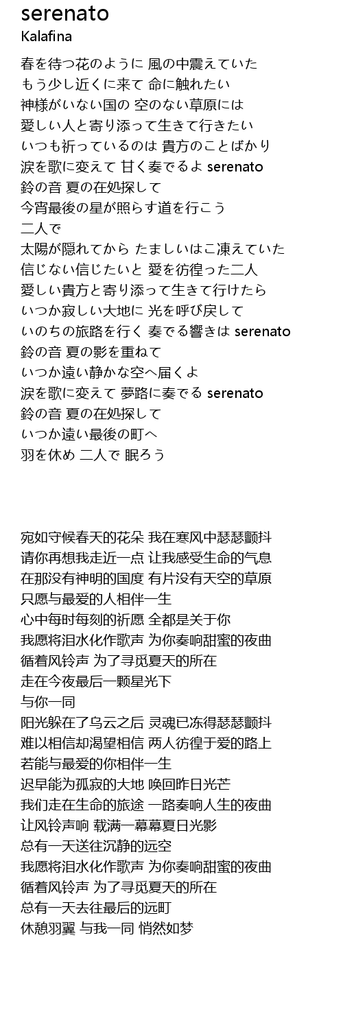 | [03:39.530] | いのちの旅路を行く 奏でる響きは serenato |