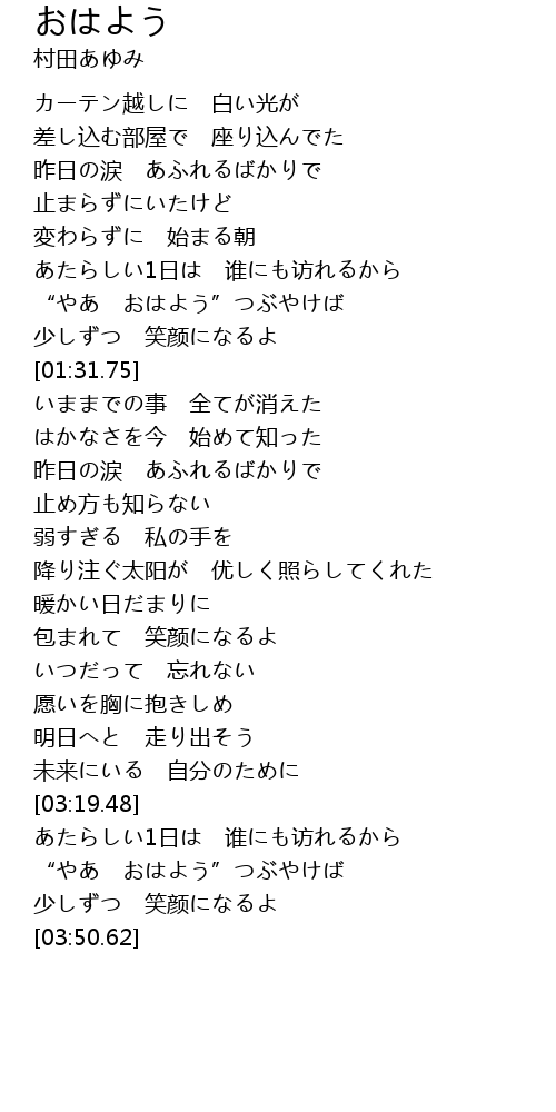 | [03:37.71] | “やあ おはよう”つぶやけば |