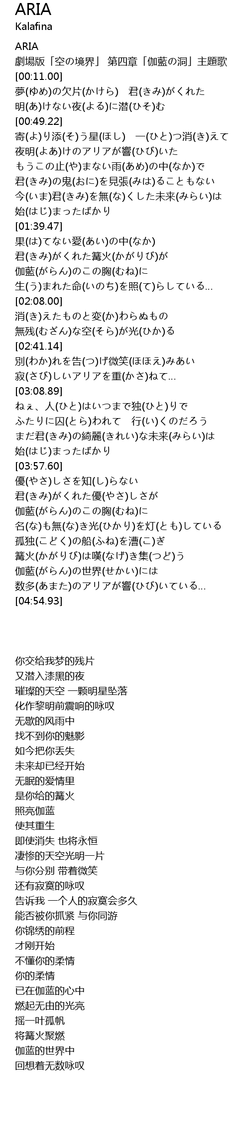 | [00:08.00] | 劇場版「空の境界」 第四章「伽藍の洞」主題歌 |