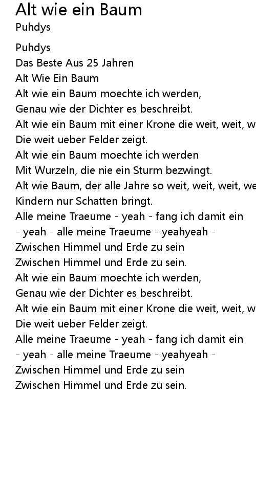 Alt Wie Ein Baum |