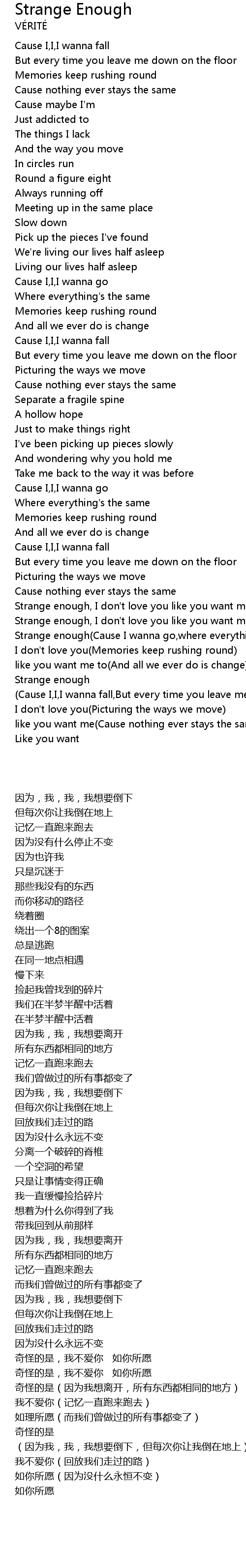 Strange enough(Cause I wanna go,where everything's the same) |