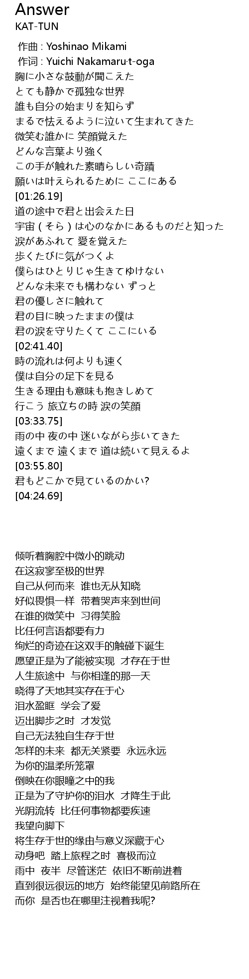 | [00:01.00] | zuò cí : Yuichi Nakamaru toga |
