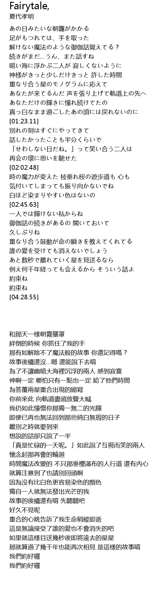 | [03:16.10] | 御伽話の続きがあるの 聞いておいて |