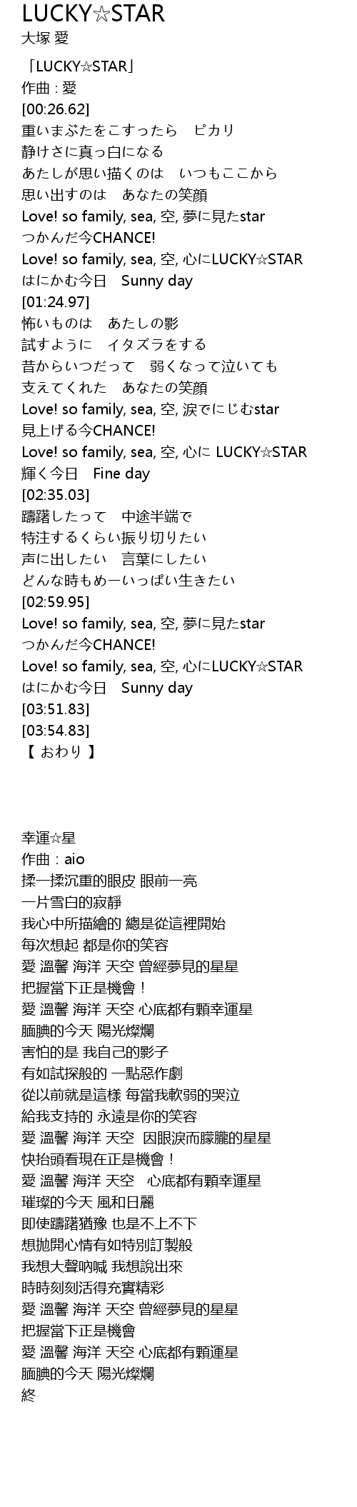 | [02:20.30] | Love! so family, sea, kōng, xīn LUCKY STAR |