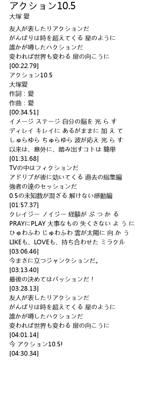 | [02:26.07] | PRAYにPLAY 大事なもの 失くさない よ う に |