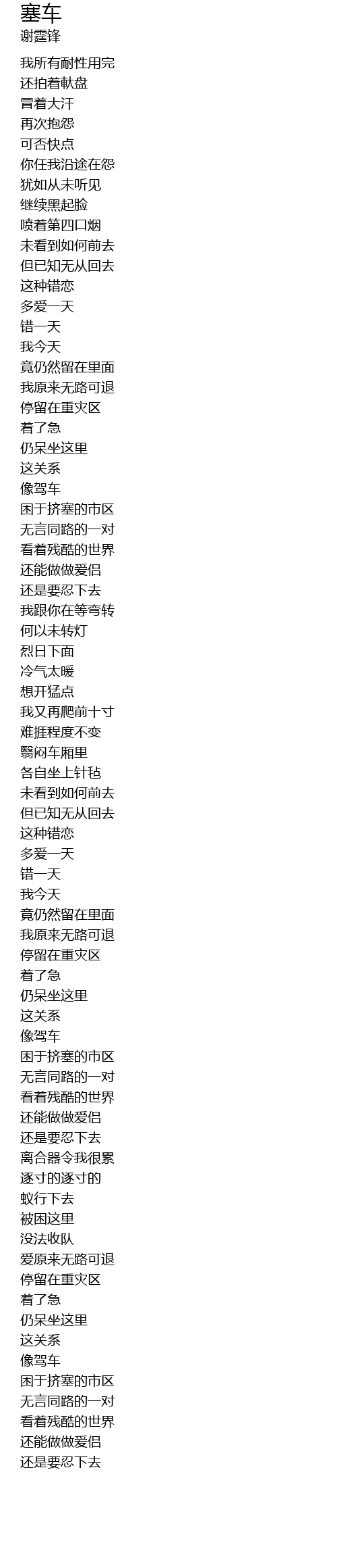 | 歌曲 | 塞车 |