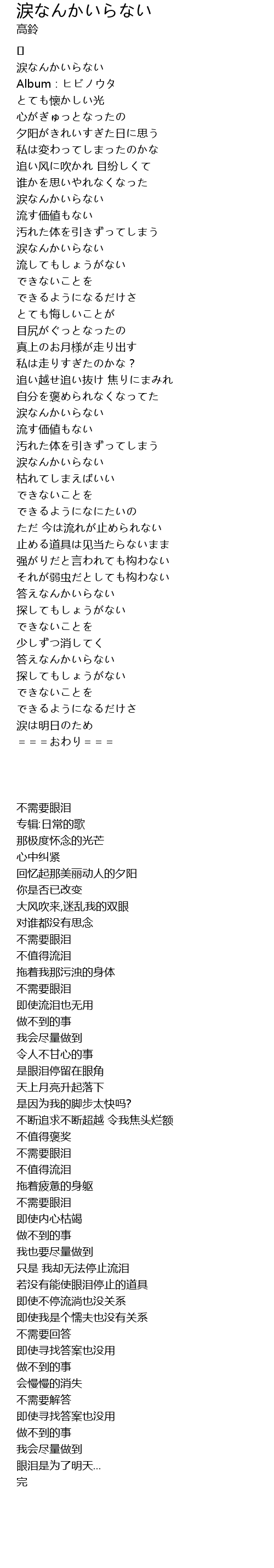 | [02:15.300] | 涙なんかいらない |