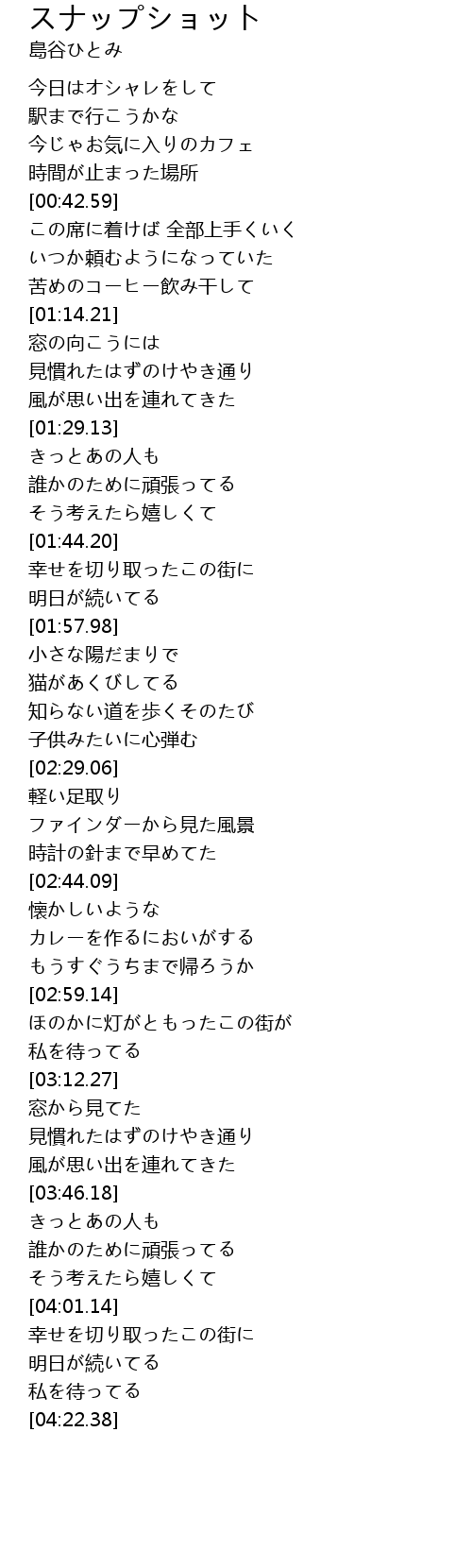 | [04:02.22] | 幸せを切り取ったこの街に |