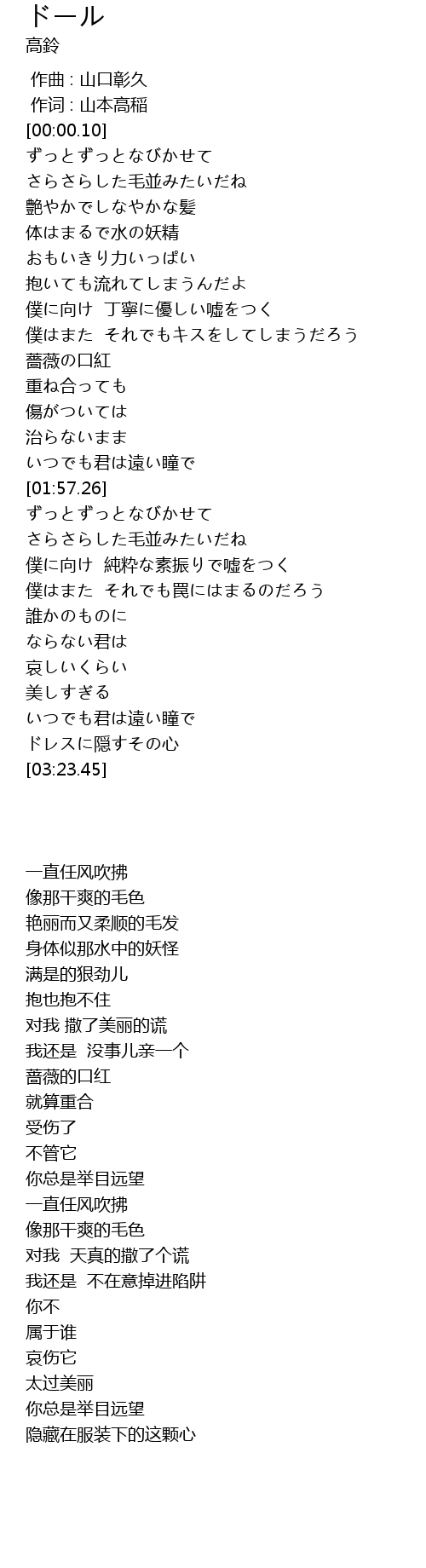 | [00:00.03] | 作词 : 山本高稲 |