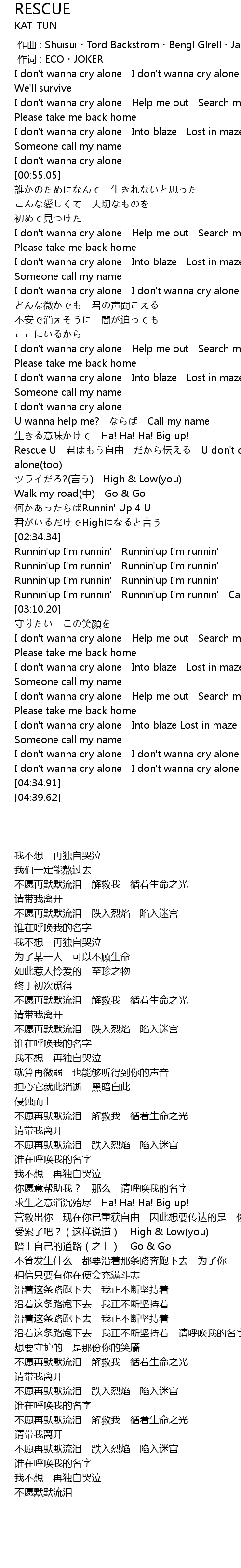 | [00:36.42] | I don't wanna cry alone Help me out Search my light |