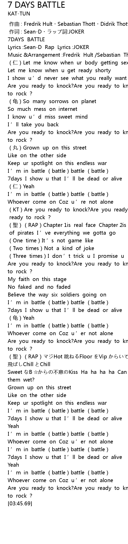 | [03:26.83] | 7days I show u that I ’ll be dead or alive |