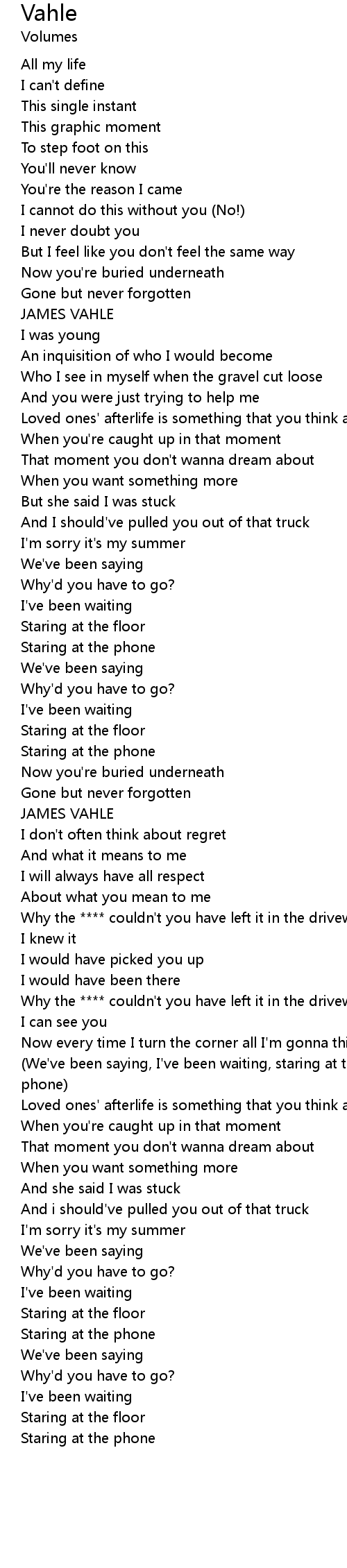 | (We've been saying, I've been waiting, staring at the floor, staring at the phone) | |