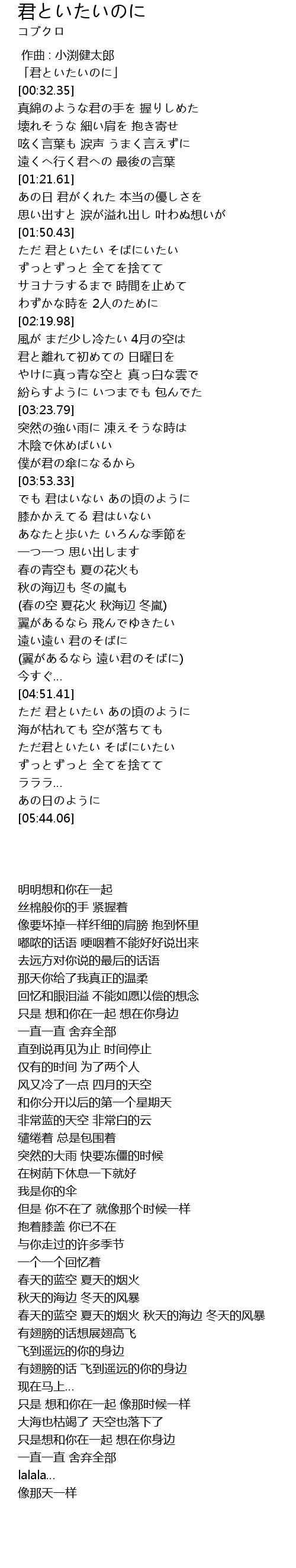 | [01:53.75] | ただ 君といたい そばにいたい |