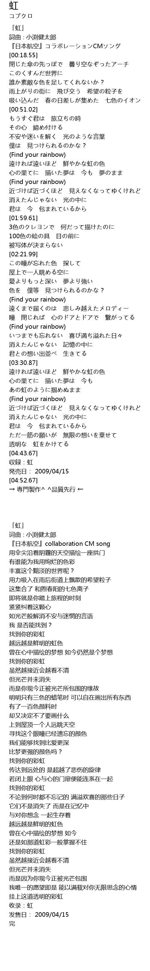 | [00:01.55] | 「虹」 |