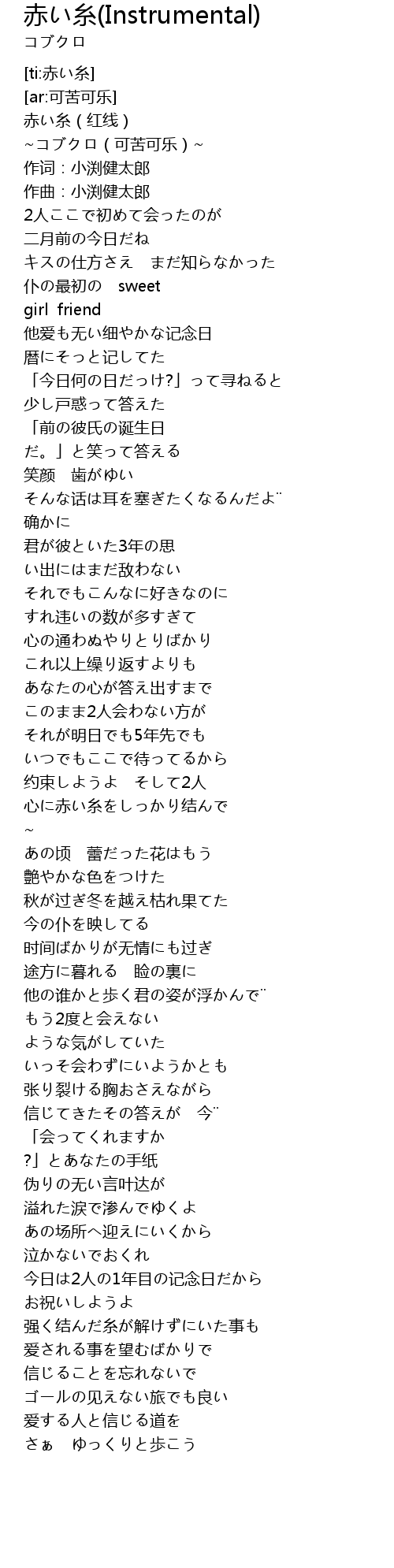 | [00:01.96] | 赤い糸(红线) |